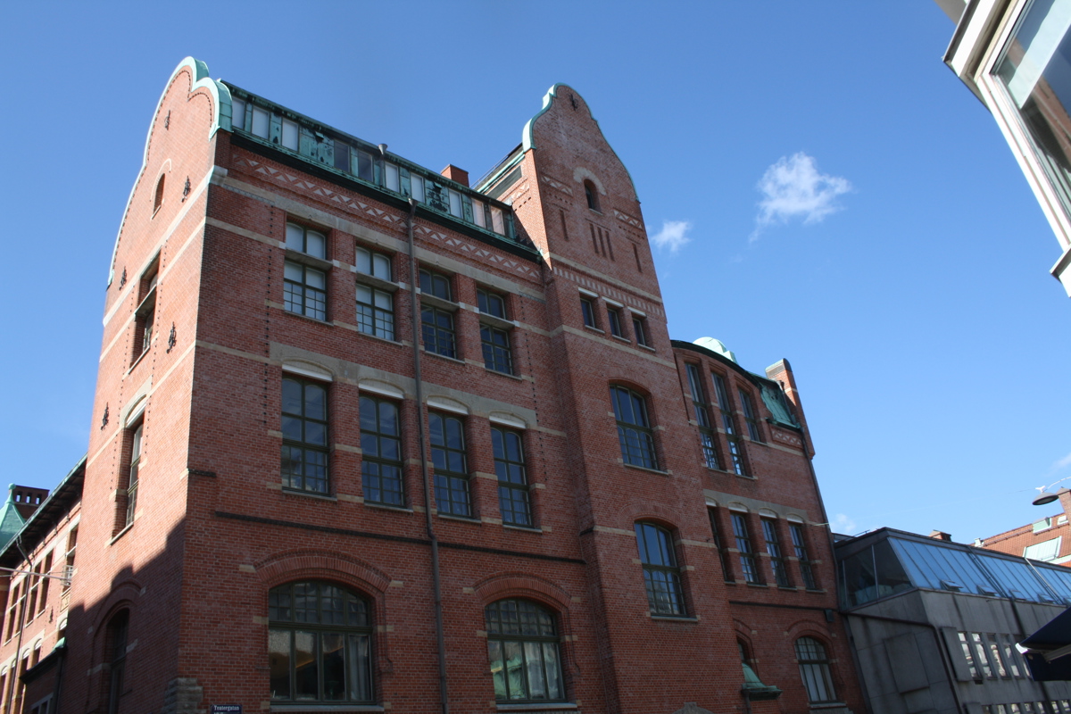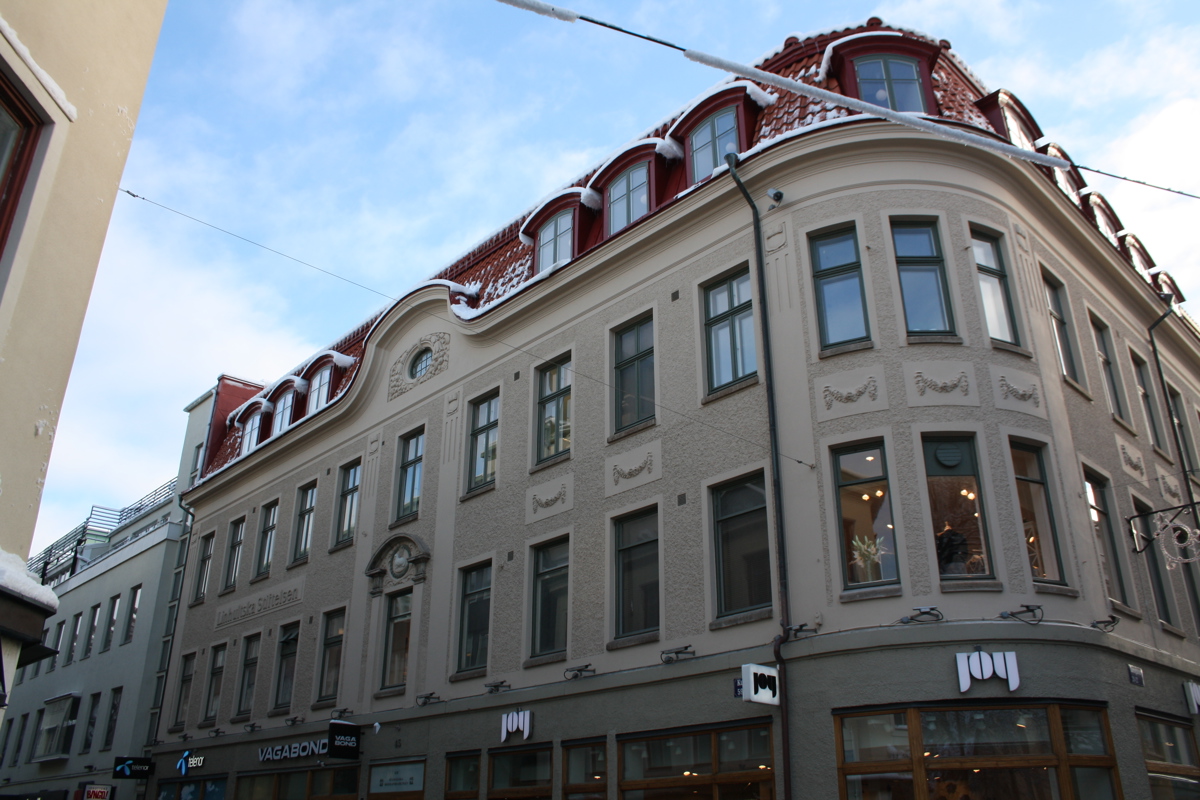 Renovering av tegelfasad, konservering av natursten och renovering av balkong.
