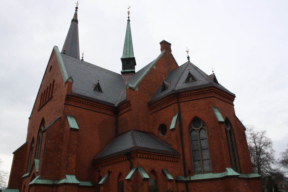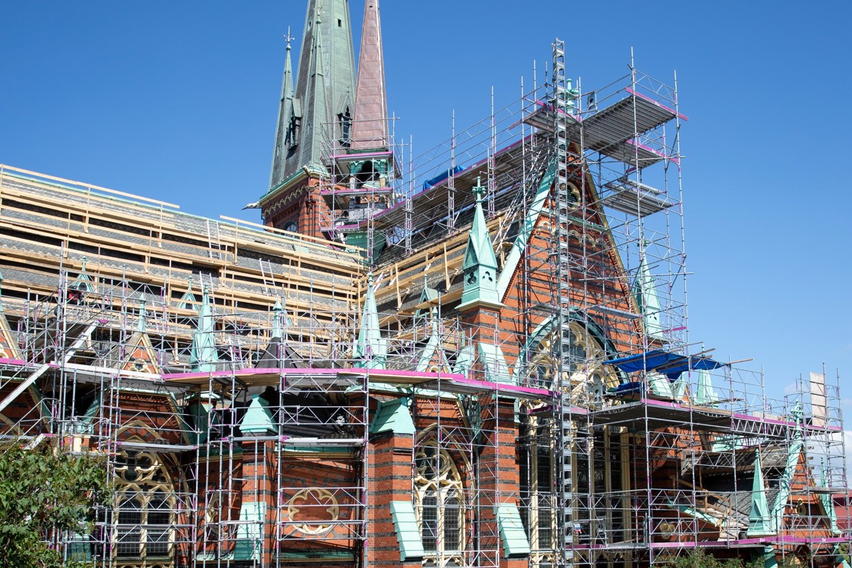 Omläggning av koppar- och skiffertak. Renovering av fasad och tonspira. (2008 & 2013)