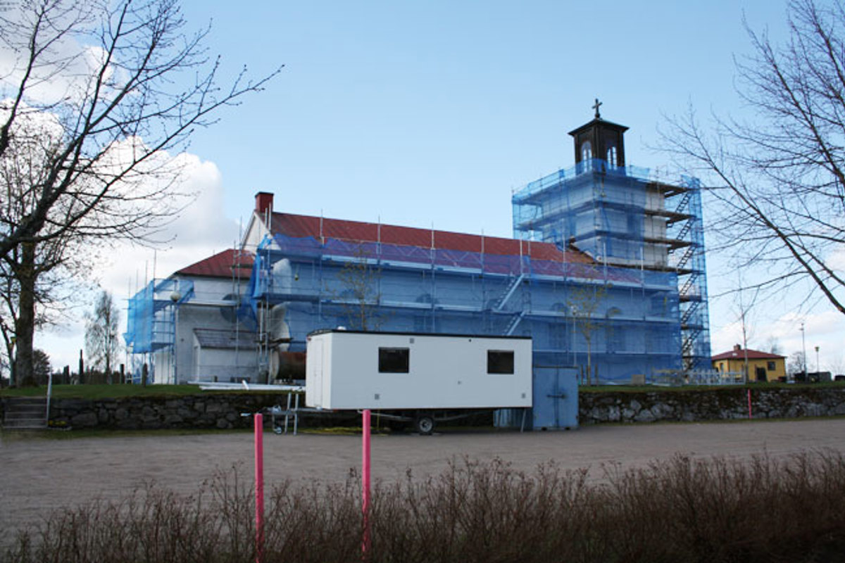 Askome Kyrka. Fasadrenovering, fönsterenovering, takarbeten.